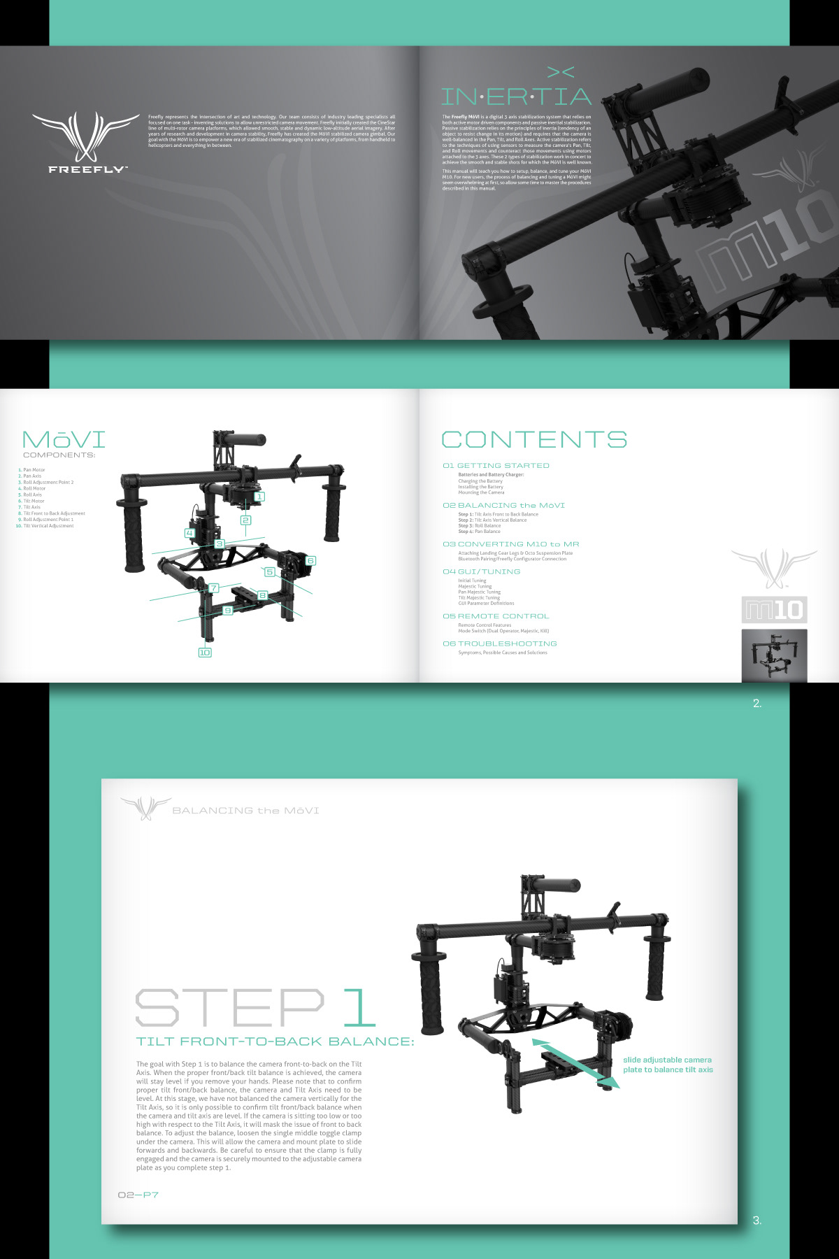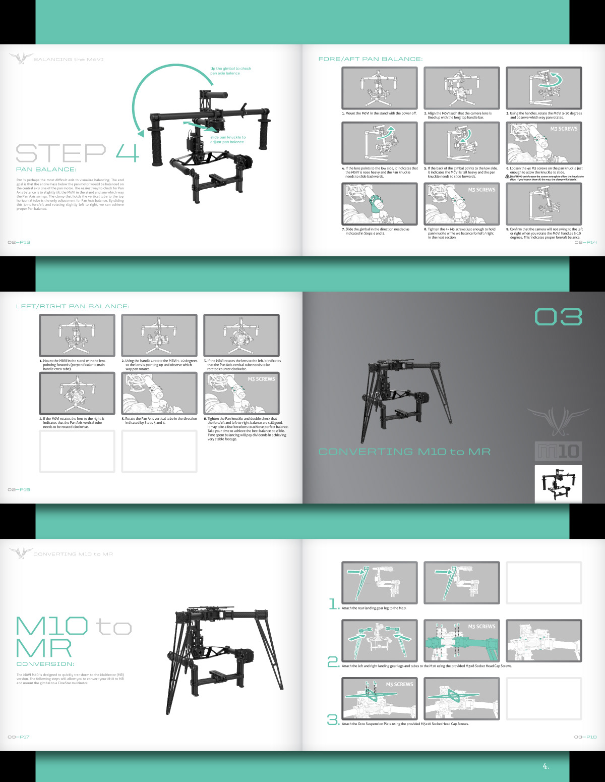 1: Movi M10 User Guide Cover. 2: Movi M10 User Guide Sample Spreads. 3: Movi M10 User Guide Section Intro. 4: Movi M10 User Guide Sample Spreads. 5: Movi M10 User Guide Icons/Infographics. 6: Movi M10 Quick Start Guide.